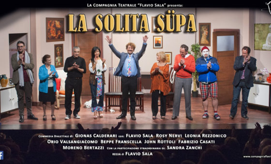 La Compagnia Teatrale Flavio Sala è nata nel 2014 da un’idea di Flavio Sala, attore, comico e cabarettista poliedrico della Radiotelevisione Svizzera Italiana, noto al vasto pubblico anche in virtù della sua irresistibile interpretazione del personaggio del frontaliere Roberto Bussenghi. Siamo una Compagnia professionale che crede nei benefici apportati alla collettività dal sorriso e dal buon senso popolare e si prefigge di mantenere viva e vitale la commedia dialettale. Le nostre produzioni impegnano volti conosciuti del teatro e dell’intrattenimento affiancati a giovani talenti e puntano a divertire e a fare riflettere gli spettatori, prediligendo toni leggeri ma mai scontati o superficiali. La nostra sigla distintiva è il fresco connubio tra il ricco e imprescindibile patrimonio della tradizione e le sollecitazioni della vita contemporanea e del mondo moderno.
