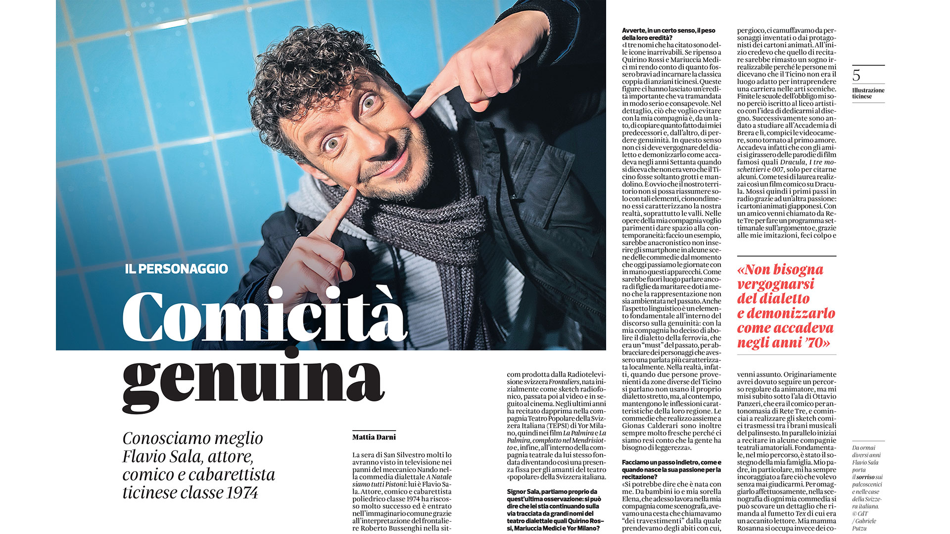 Comicità genuina Di Mattia Darni – Gennaio 2023 Conosciamo meglio Flavio Sala, attore, comico e cabarettista ticinese classe 1974.
