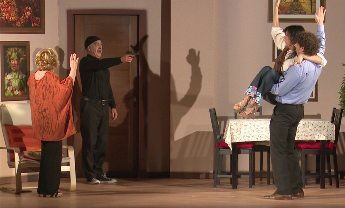 Ignazio (Flavio Sala) gestisce un piccolo negozio di prodotti biologici insieme alla moglie, Luisa (Rosy Nervi): una donna giovane e sognatrice, che vorrebbe diventare una grande attrice di teatro. Dai due si trasferisce però anche Franca (Leonia Rezzonico), la madre impicciona di Ignazio, che non sopporta la nuora e cerca ogni pretesto per litigare con lei. La situazione precipita quando i tre si trovano in casa un rapinatore (Orio Valsangiacomo) in fuga dalla polizia…